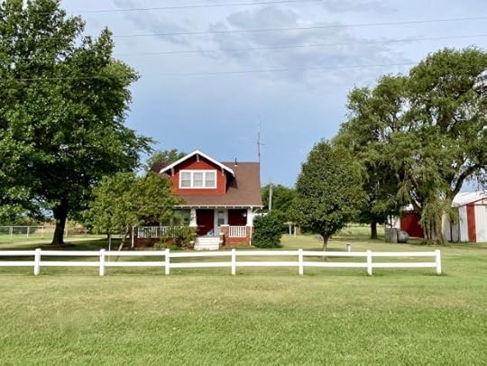 I especially love the cover of this book because it reminds me of the barn on the farm I grew up on in Rice County, Kansas. I couldn’t find a photo of the farm before the barn was torn down, and as you can see, there are clearly no mountains where “my” barn was in the middle of the Kansas prairie, but still, that barn brings back so many warm memories for me! (And if you look carefully to the far left in the photo about one-third of the way up, you’ll see the little barn my dad built on the site of the old barn as a playhouse for the grandkids (with a place for his lawnmower and garden tools in the back).