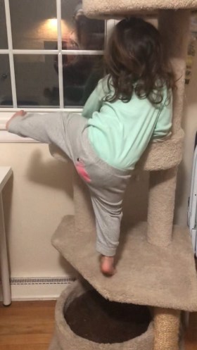 My two-year-old granddaughter is very active, and often fearless. My daughter sent me a video the other day of her attempting to climb the cat tree in their home. A more cautious, thoughtful child (like her older sister, who is four), might stop and think, first, before attempting such a climb: “Hmmm . . . I’m much heavier than a cat . . . and it looks a little wobbly . . . and . . . what will I do once I reach the top?” But my granddaughter is only two, so she scrambled up the post.