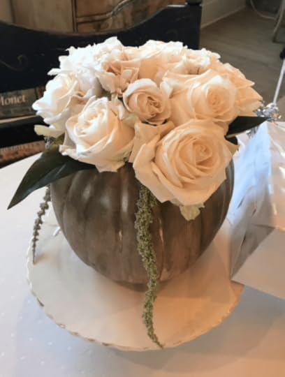 And Kim is so creative. She bought these cute little white plastic pumpkins, antique painted them, cut the top off, stuck a Solo cup inside and made it a planter!
