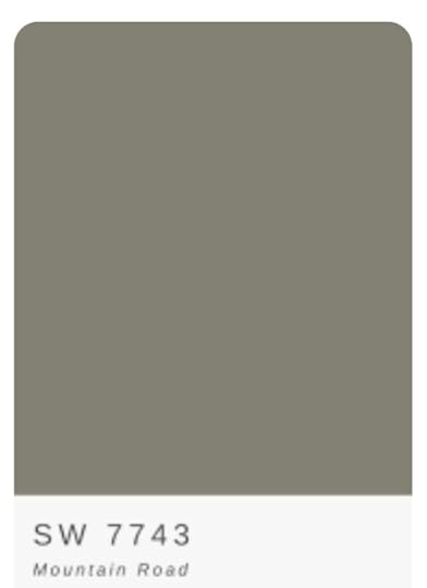 Sherwin-Williams describes Mountain Road as “a rugged and refreshing green-gray neutral that will have you sniffing the air for a cool, pine-scented breeze. Create a calmer space with this muted hue.” Whatever… I just love the color!