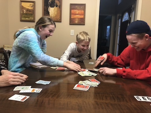 We love games as a family and filled many evenings with various games. Above we’re playing Monopoly Deal, a card game that is much faster (and thus better) than the board game version. It can be played with a couple people or with six or more. Another game we’ve really enjoyed since Christmas (and had to get the expansion packs as they released at our local Barnes & Noble) was Disney’s Villainous. It’s a strategy game that everyone in our family from the nine-year-old up can play and enjoy. Just a note, said nine-year-old also plays Settlers of Cataan with us, so he is a strategy game playing dude.