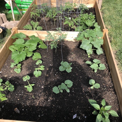 My husband and sixteen-year-old are also replacing the old raised garden beds we inherited with the house. The old railroad tie type wood had rotted, and since we weren’t going to be in Rome for a couple weeks, this was the summer to replace them. As you can see, the tomatoes and cucumbers are very happy. They’ve grown even more since I took this photo. I love that we have beds we can use again…especially since there’s nothing rusty to require a tetanus shot.