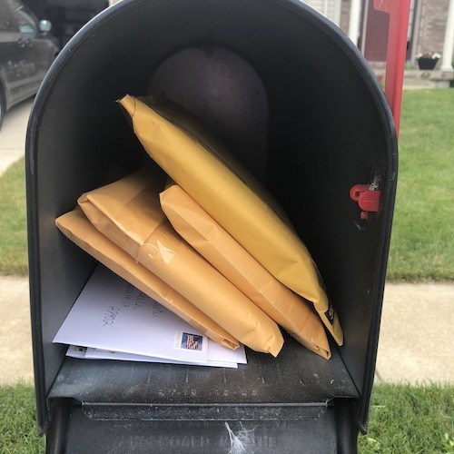 Then there’s reader mail. This was today’s packets of books and envelopes of thank you goodies to readers who have requested my books at a library or left review. If you’ve done either, please make sure you fill out this form, so I can send goodies your way! Thank you!