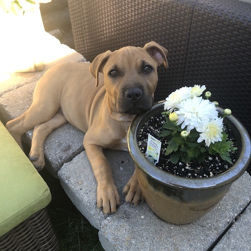 She’s a shelter puppy, so we really have no idea what she is other than an educated guess that she’s a boxer/lab mix. The good news is she’ll be on the smaller side — at least that’s the vets best guess.