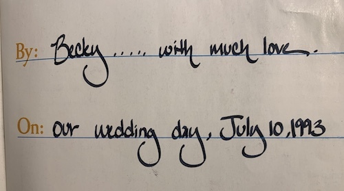 I’d inscribed my husband’s full name on the inside the Bible back on July 9th, 1993. Cary had obviously used that name to find a contact email for us in the church’s directory.