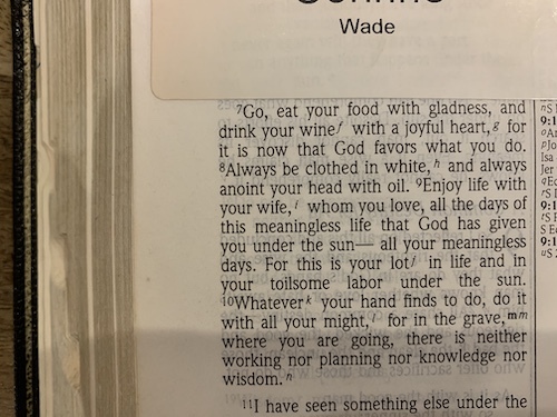 I’ve sat in the service when he’s led worship many, many times but I don’t know him personally. So I was astonished when I read his email, which basically said, “I found your husband’s Bible at church. Where can I drop it off for you?”