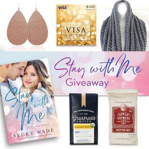 My publisher and I are currently offering a giveaway in celebration of Stay with Me! Every prize was inspired by an aspect of the novel. Except the cash card. That’s just because cash is handy. To enter, click here or on the image below.