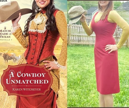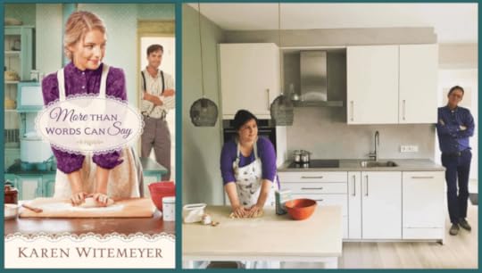 These first two served as the inspiration for this game. This one was done by Amy Green, fiction publicist at Bethany House, as part of a cover replication challenge last fall. The one below is by a reader in the Netherlands who recruited her dad to assist as our hero. Her dad reads my books, too, so he already has his hero spurs as far as I’m concerned.