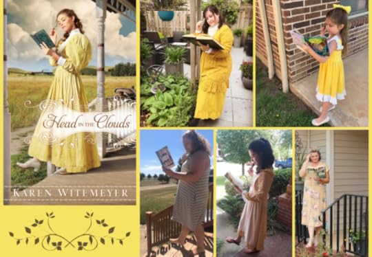 Head in the Clouds proved to be the most popular cover replication. So many lovely ladies taking their lives in their hands by reading while walking down steps.