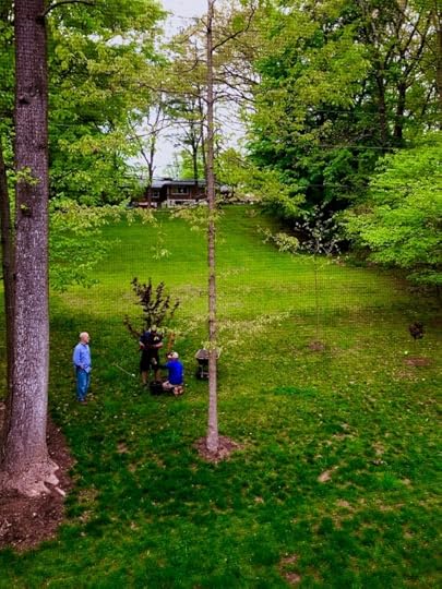 There’s so much we’d like to do in our new yard, but it’s a slow process and we’re on a rather tight budget. Buying our flowers is always one of my favorite days of the year and it was especially fun this year because we also bought two trees to plant in the backyard—a Newport plum and a Japanese maple, which the nursery came out and planted for us. The new trees are dwarfed by the towering trees in our woods, but we’re excited for the color they add to the yard.