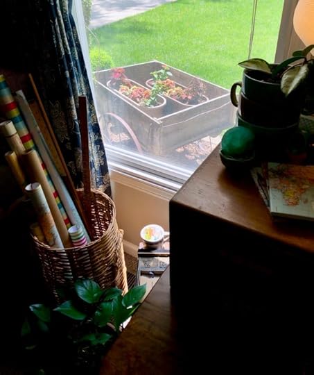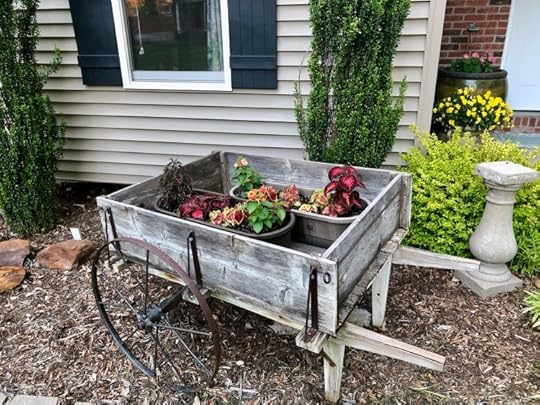 Several varieties of coleus and lantana are filling the pots in the garden cart my dad made as a housewarming gift when we moved to Wichita in 2013. I especially love that I can see the cart from my office window.