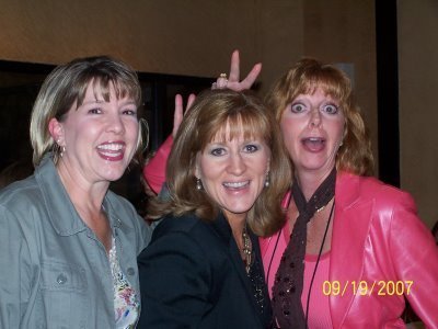 From L to R on back row (in the above pic): Brandilyn Collins, Francine Rivers, Sandy Shephard, Tricia Goyer, Karen Ball, Sunni Jeffers, Janet Ulbright Front cluster of “four”: Robin Lee Hatcher, moi, Sharon Dunn, and Gayle DeSalles in pink
