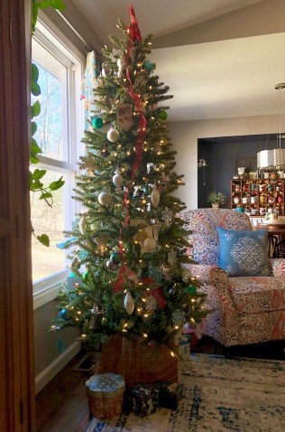 We always share pictures with each other, and it is the highlight of my year to see all the wonderful creativity of our members. Since this is a book-loving group, many of the ornaments tie into books in some way. I’ve included a sampling of a few of my favorites from this year. You’ll see ornaments made from paper, some used actual book pages for their design. Others have fun with cover art. Some match the western theme of my books, and some capture the coziness of reading by the fire. Aren’t they great?