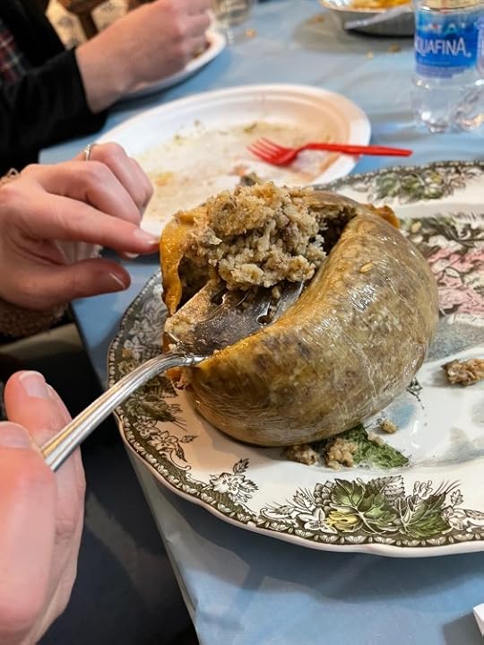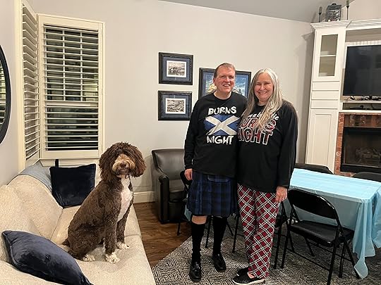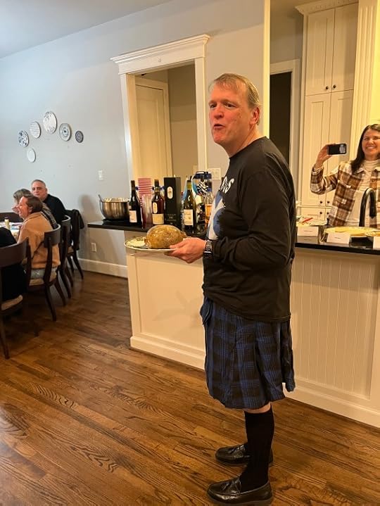 Our guests joined in the fun. Several people wore plaid clothing. They also took their turns reading a Burns poem—some even attempting an accent. One of our friends played a traditional hornpipe song on his violin. When it came time to do the traditional “Toast to the Lassies” and the “Lassies reply,” Chat GPT joined the party! Of course, I think this part is where the Scots have an advantage after consuming so much whisky prior to the festivities, but I think our crew had a great time without being tipsy.