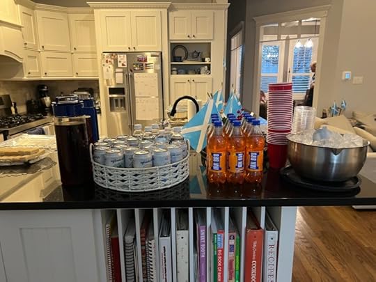 Let’s just say no one went hungry! Or thirsty. Along with the traditional whisky, we also bought some of the second best-selling drink in Scotland—a soft drink called Irn Bru for our guests to try. We had plenty of Scotch and Irn Bru left over after everyone who wanted to try it did. Side note: Jeff and I went to the liquor store for the first time in our lives to buy it. We had no idea what to get, so we bought the bottle with a picture of Robert Burns on it, lol!