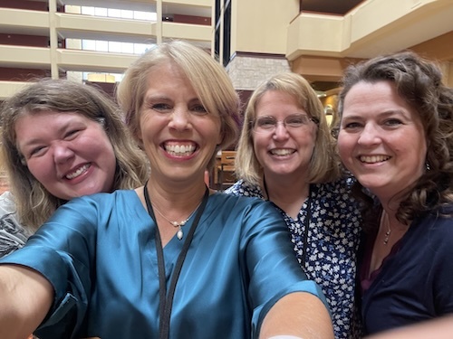 I adore the opportunity to spend time with my writing friends. These are just a few of the lovely souls and amazing writers that I have the privilege of calling friends. There’s Robin Jones Gunn, Gabrielle Meyer, Kate Angelo, Denise Hunter, Colleen Coble and Kelsey Anderson. Then there’s that group of laughter below. “Pivot!” Somehow the Friends clip became a thing with Bethany Turner and me — and by extension Pepper Basham. Karen Witemeyer taught a great class on humor — if you have read her books, you know she’s great at it!