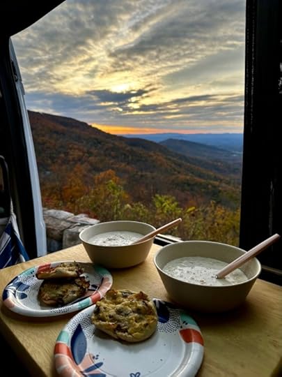 Sunday morning we made hot drinks for the road and left Shenandoah National Park before sunrise. We drove the stunning Skyline Drive until the sun began to peek over the Blue Ridge Mountains of Virginia. Then we pulled in to an overlook, opened the doors of the camper, cooked oatmeal, toasted English muffins, and watched a breathtaking Sunday morning sunrise. Thank you again, Jesus! I think we’re back on track.