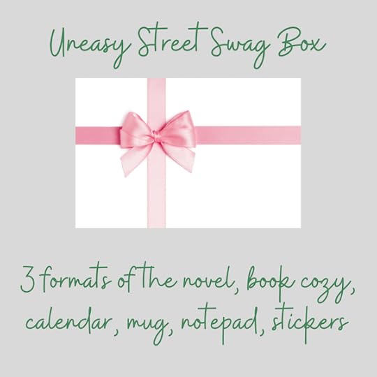 “Want to Read” ShelfThe swag boxes I offered for Memory Lane and Rocky Road were a hit with a lot of readers. And I thoroughly enjoyed creating them and sending them. So I’ve also added three swag box pre-order options to my website bookstore for Uneasy Street.