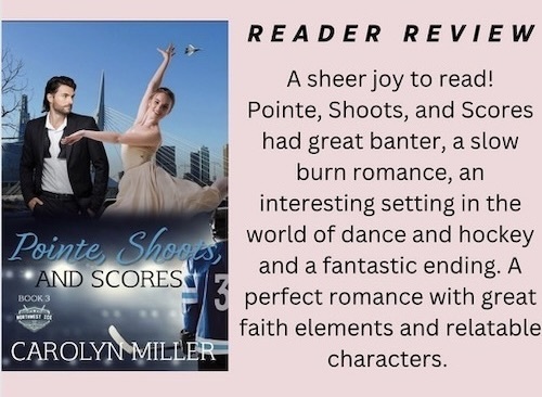 We end up with a story that dancers have loved and others have described as having “great banter” and “their new favorite in the series.” Pointe, Shoots, and Scores is the third book in the Northwest Ice Christian hockey romance series, can be read as a standalone, and is perfect for fans of banter-laden romance with hope, heart and humor. Whether you’re a dancer or not, I hope you’ll check it out! You can get your copy here.