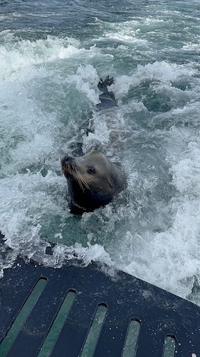 My brothers-in-law (pictured above) love sport fishing. On an early morning fishing trip they caught four marlin. (!!) The time we went out with them, the goal was simply a relaxing ride along the coast. We ended up seeing two whale tales! And this guy followed us into the harbor…