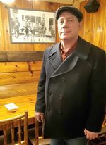 I really liked the character and the coat, so my husband found a pea coat (sometimes spelled as two words) for himself on a resale site.