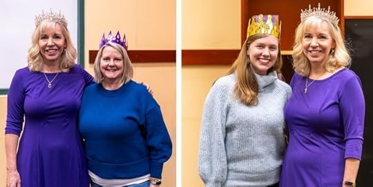 Why did we wear crowns? If you’ve read many of my books, you know I don’t usually include royalty, but in this book, I have several royal characters for the first time, and probably the last, so I wanted to mark the occasion. In fact, I have more historical characters in the first two books of this series than in any of my other novels. Plus, it gave me great pleasure to look into the audience and see old friends, new friends, and family wearing crowns. Readers are definitely royalty to me!