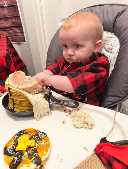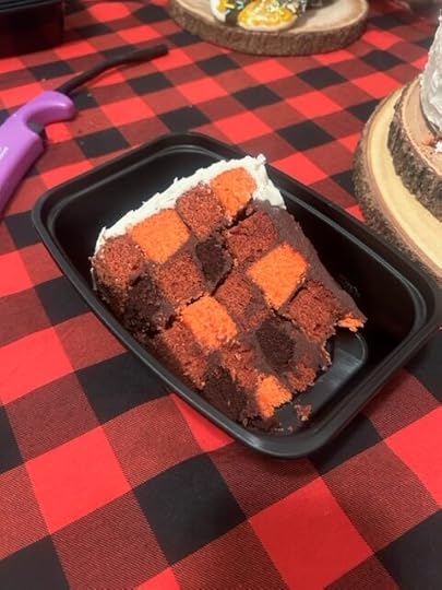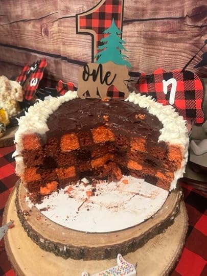 Kellie requested a “Lumberjack Smash cake” for Leo, and she made a delicious “lumberjack” red velvet cake for us to enjoy. Wait until you see the inside of her cake!