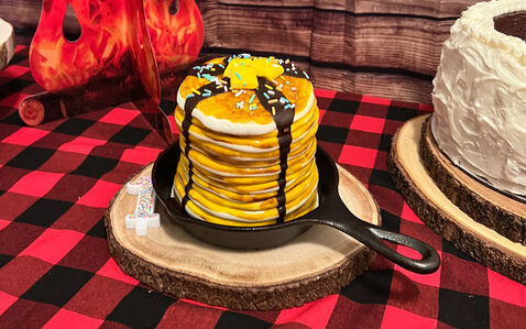 Kellie shared that she wanted Leo’s Smash cake to look like a stack of pancakes but for it to really be a funfetti vanilla cake on the inside. And she wanted it to be rustic looking (good thing for me!). So I started googling and came up with this…