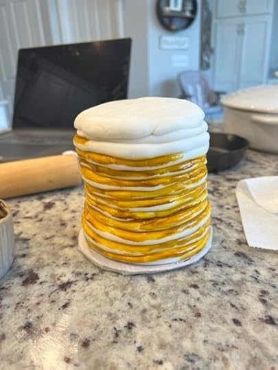 Even though I’ve baked almost since I could stir, this was my first time to work with fondant, and I’m especially grateful to Rose at Rose Bakes for her tutorial on how to make a pancake Smash cake. And for her recipe for marshmallow fondant. So easy! She helped me tremendously! (Thanks, Rose!) Just please don’t compare my cake to hers! LOL