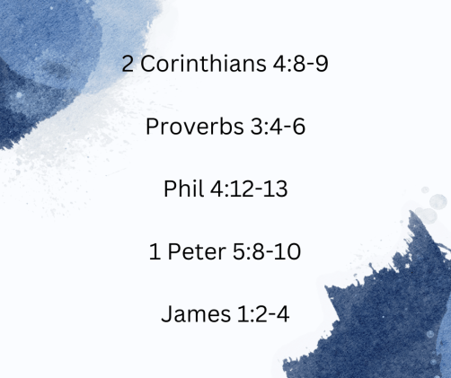 There are many other bible verses that speak on adversity, which I think it’s mentioned so often because most, if not all of us will deal with adversity at some point in our lives, in our walk with Christ. For further personal study, if you’re interested, you can look up: