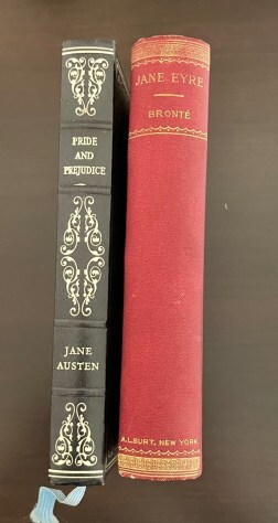 I decided it wasn’t good for dear Jane to be alone, so I searched for a well-fit companion. The Pride and Prejudice volume I purchased is not quite as spectacular. It was printed in the 1960’s. It has a great vintage cover, though, and provides a lovely contrast to the “plain Jane” cover of Ms. Bronte’s book.