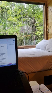 Hoping to flee distractions and get back on track, I went on a solo writing getaway for a few days. I stayed in a mini Getaway House less than two hours from my home. The cute cabin had a comfy bed, small table, kitchenette, and a nice bathroom inside, and a fire ring and chairs outside. Best of all, what didn’t it have?