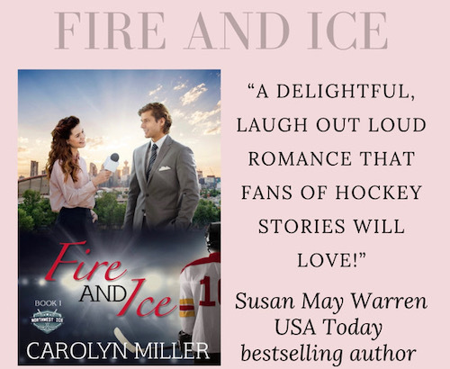 Hannah is a former athlete, quick-witted and kind, and (re)meets Franklin James, the local hockey hero who is the son of a local rancher (the Three Creeks Ranch which boasts its own movie studio!) in the most spectacular awkward moment that is laugh out loud funny (according to Susan May Warren). Lucky for Hannah, he’s willing to overlook it and their chemistry soon ignites into a forbidden attraction. For how can a sports reporter stay impartial when they’re head over heels in love with a player they’re meant to report on? Find out in Fire and Ice, out now at Amazon & other retailers.