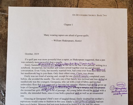For the last week or so, I’ve been reading a print-out of my next novel (A Winter by the Sea, December 2023) and making LOTS of changes as I go.