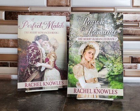 And I’m tardy in reading two Regency romances by British author Rachel Knowles—A Perfect Match, and A Reason for Romance.