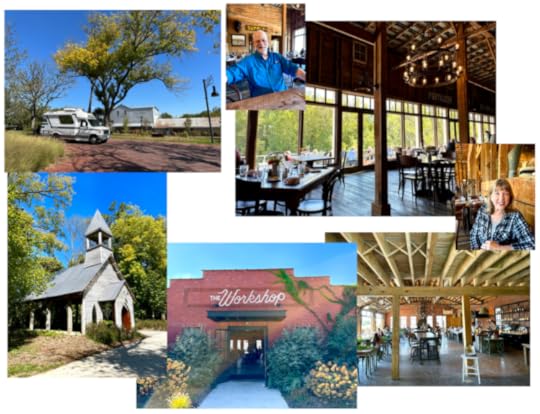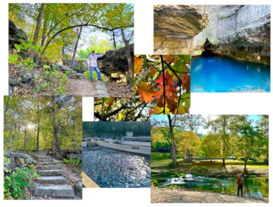 The next day we drove to Finley Farms in Ozark, Missouri. We’d had coffee at The Workshop once before but wanted to eat at the Ozark Mill there. It was delicious! Ken had Chicken and Dumplings and I ordered the catfish and we were both very happy with our choices. We walked around the grounds for a while before heading for our next campsite in Roaring River State Park. We really loved this park with seven hiking trails, a fishery, lots of fishermen to watch, and one of the deepest natural blue springs in the country.