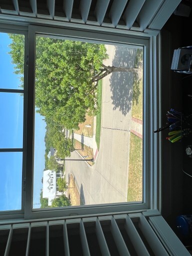 When we moved into this house, I found this desk at a furniture consignment shop and fell in love. I usually go for more ornate, antique-like things, but for some reasons the unique and clean lines and the enormous workspace of this desk appealed to me. This was the only piece of furniture I had in the multipurpose office space. I don’t always sit at a desk, but I’ve found myself doing so more and more. Might have something to do with the view.