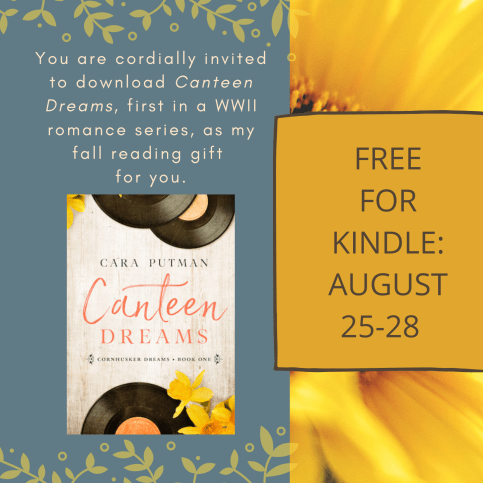 The day before her wedding the first of two novellas due in September will be turned in. This summer I’ve lived in 1942 and 1945. It’s been so fun to step back in time again. If you’re a new reader, you may not know that when I started writing, eight of my first 10 or so books were set during WWII. Basically, I was about eight years ahead of the trend. Editing the first novella while finishing the second has made me nostalgic for those first books. What’s a writer to do, but lower the price on the first of all my babies to free through August 28th. If you’re looking for a quick, clean, historical read, be sure to download Canteen Dreams this weekend. It has 4.4/5 stars with 305 ratings on Amazon, so many readers think it’s a good read.