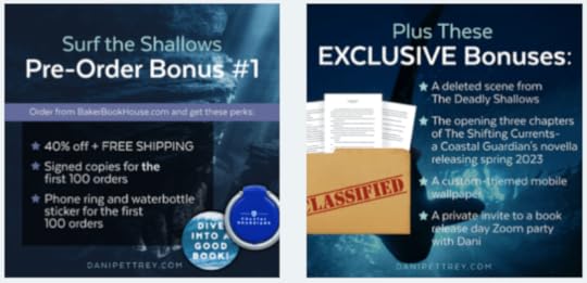 In anticipation of The Deadly Shallows’ July release and, in appreciate of my awesome readers, I’m launching the Surf the Shallows’ pre-order special.