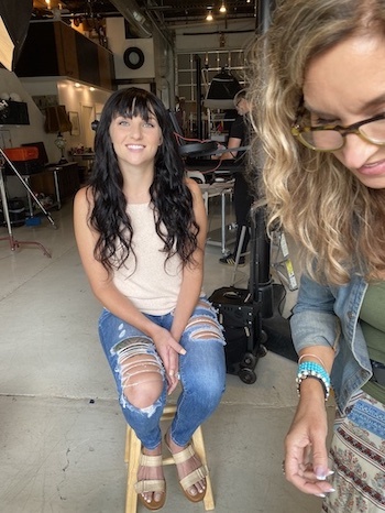 From the time Bryant and Ellie were booked for the job, the Bethany House staff knew Ellie’s blond hair wouldn’t work on the cover because Finley has long black hair and bangs. A wig to the rescue! The team sent me a photo of this wig before they purchased it, which I appreciated. I was able to say, “Yep! That’s what Finley’s hair looks like.”