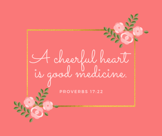 I love to laugh. It’s such a great stress-reliever. Sharing laughter bonds people and creates lasting memories. Laughing minimizes pain and brings sunshine into dark corners. It’s one of the reasons I incorporate humor in my stories. I want to give others a reason to smile, to lighten their burdens, and encourage their spirits. One of my life verses is Proverbs 17:22.