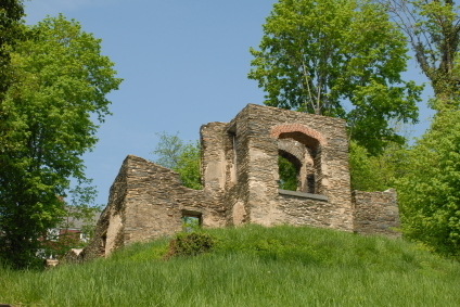 Destroyed during the fighting that engulfed Harpers Ferry in West Virginia during the Civil War, the ruins of St. John's Episcopal Church stand high atop the historic town and overlooks the Potomac River. istockphoto.
