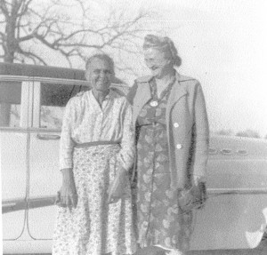 This is "Big Mary" and Lucia Kirven. "Big Mary" was the cook for Hugh Kirven's family in the early 1900s, when Lucia was a child. This photo shows a tearful reunion in 1964.