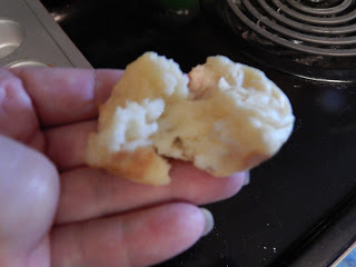 The cheese is a little hard to see because it's a white cheddar, but it's there. I ate a few plain, and then started slathering them with sour cream, because I love sour cream. Dip them in ketchup or ranch, or whatever you like on your potatoes.