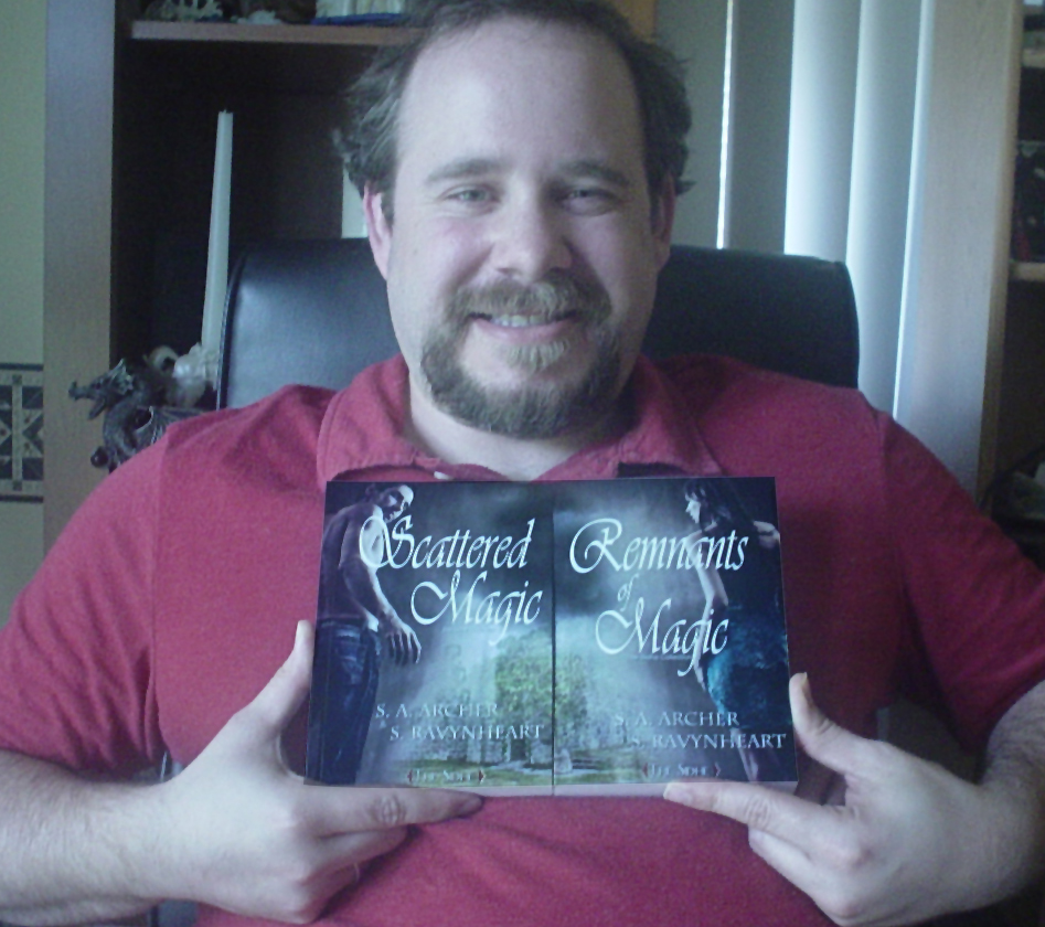 (S. Ravynheart with the two book collection of Season One of The Sidhe in print)