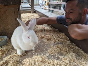 Thursday: the weather forecast was terrible for where we had planned on going (Valleyfair, an amusement park just outside of the Twin Cities in Minnesota), but a whole lot better for the petting zoo we had to cancel a few days earlier, so we made it to Faun-Doe-Rosa in St. Croix Falls. And I petted all the animals. And I had completely forgotten to take my antihistamines, so we had to stop at a gas station on the way home and get some Benadryl, and I spent the rest of the day feeling doped up. But, amazingly, my back didn’t bother me. Or at least I didn’t notice it over the pain of my bulging eyeballs…because that’s an appropriate way for my body to react to petting a bunny for the first time in 20 years, right?