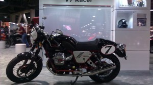 I saw several marvelous bikes in the "Dream Pavilion"including the Moto Guzzi v7 Racer, which made me swoon a little. I love the looks of a classic bike and of course the Italians are wonderful designers. My friend Neale Bayly, a moto-journalist tells me it's a sweet ride too.