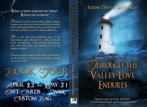 Through the Valley Love EnduresWhat if death came for you today? Would you be ready?Forced to face his own mortality, Eddie Santiago fought to stay alive in a broken world. His incredible journey through heartbreak, abuse, and adversity left him with one truth: every life makes a difference.This is the true and compelling story of his supernatural quest through the valley of death, doubt, and darkness. Eddie provides a passionate story that will capture the attention of even the toughest skeptics.Angels, demons, heaven, hell, Jesus and the devil: are they fiction, or are they more real than anything else in the world?Buy Paperback / KindleAbout Eddie David Santiago[image error]