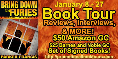 The author is giving away $50 Amazon gift card, $25 Barnes and Noble gift card and autographed copies of the two Quint Mitchell Mystery books, MATANZAS BAY and BRING DOWN THE FURIES.