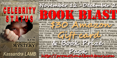 The author will be giving away a $30 gift certificate from Amazon, a signed paperback copy of her latest book, Celebrity Status, and EVERY person that enters the contest will get an ebook of the first book in the series 'Multiple Motives'Ends 12/2 Fill out the form to participate
